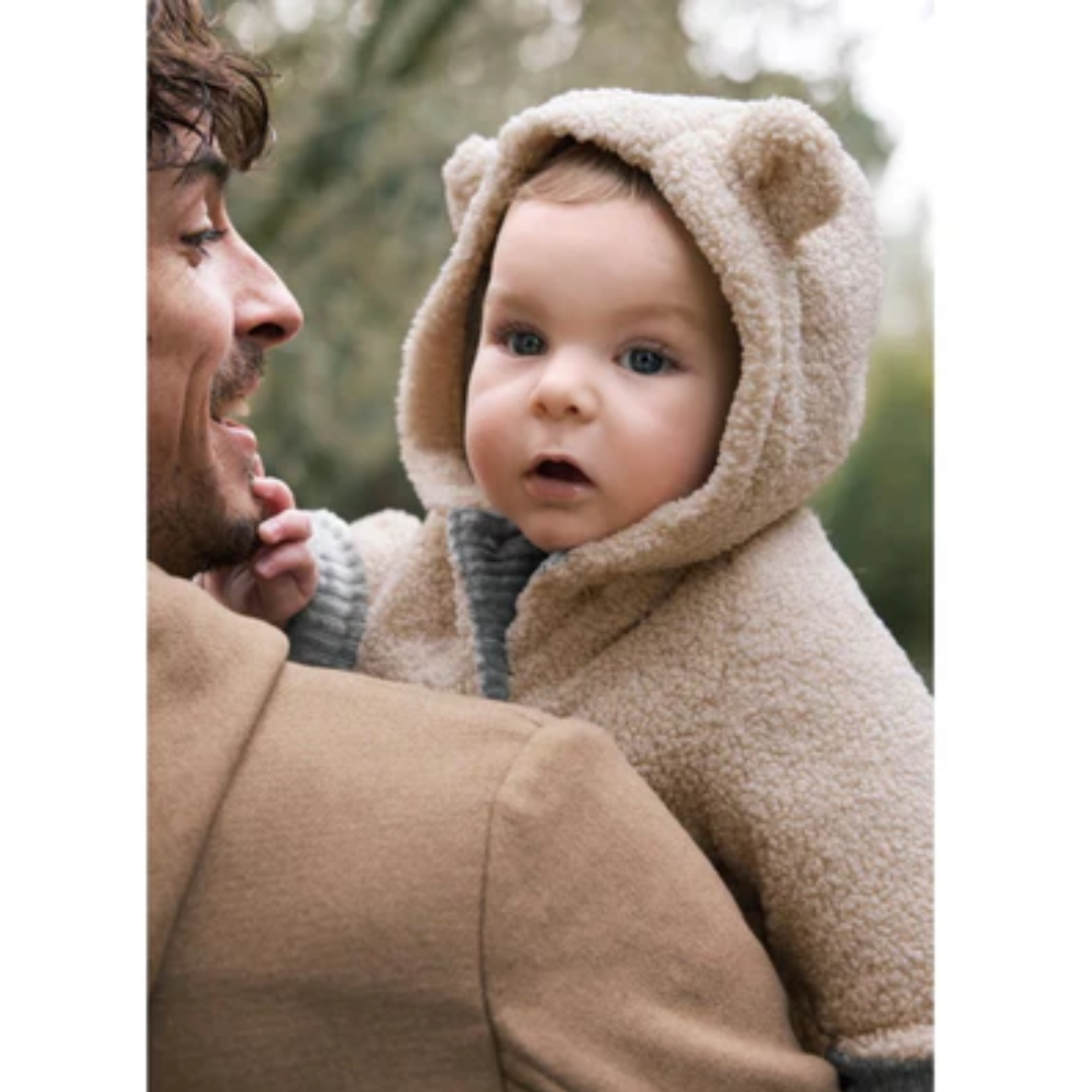 Chaqueta reversible con capucha, cierre de cremallera frontal y terminada con 2 bolsillos aplicados en la parte delantera.