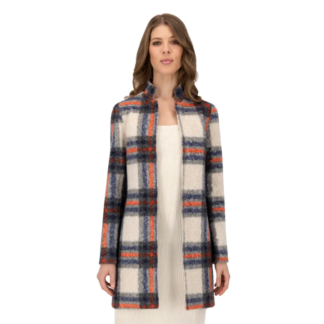Este abrigo ligero de corte recto presenta un cuello alto y un diseño minimalista que realza su elegancia. Su patrón a cuadros le añade un toque contemporáneo y exclusivo, ideal para quienes desean una pieza adaptable que complemente tanto estilos casuales como formales. Es la opción perfecta para temporadas de entretiempo o para elevar cualquier conjunto con un aire sofisticado.