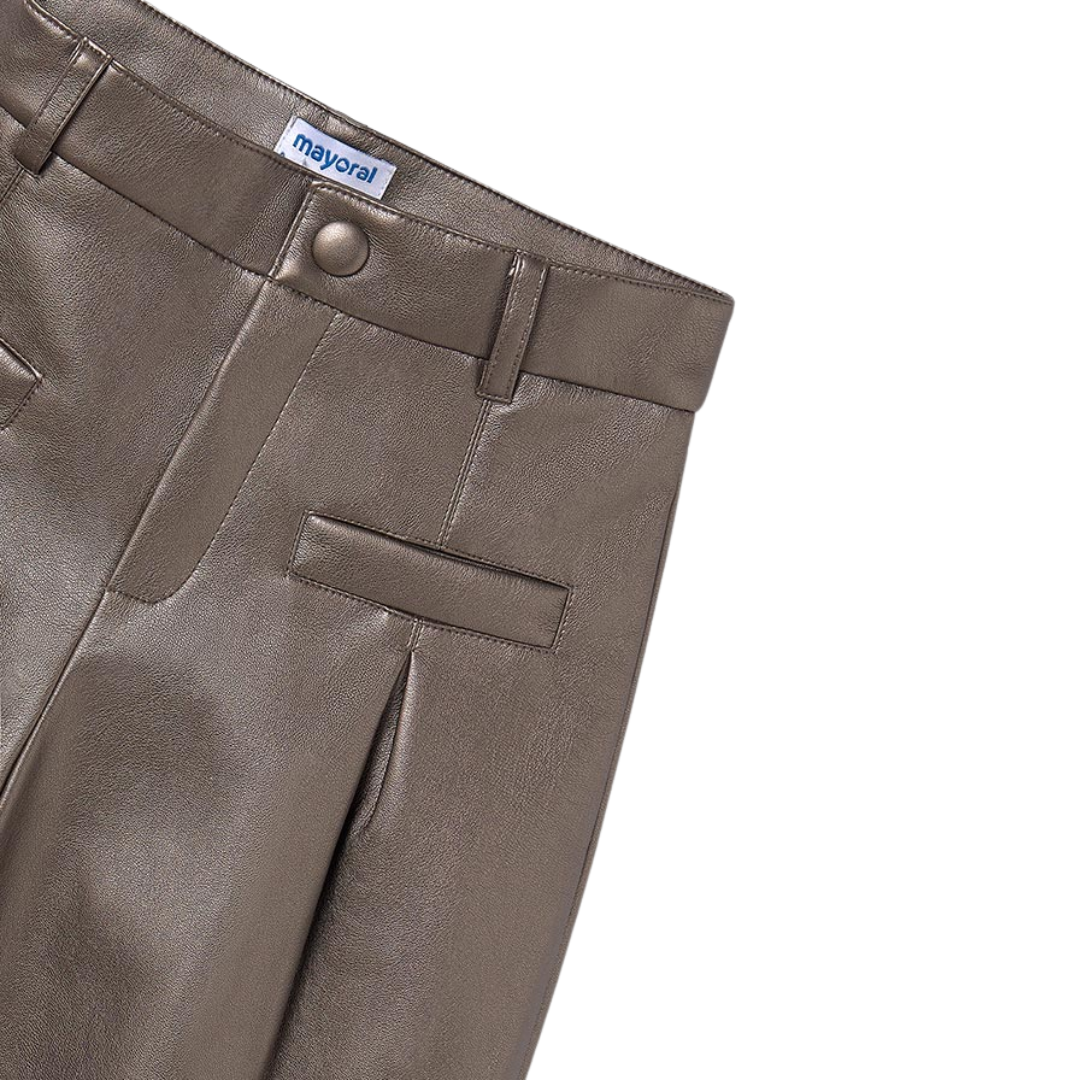 Su cintura elástica garantiza un ajuste perfecto y libertad de movimiento, mientras que el acabado brillante y suave le da un aire moderno y versátil, perfecto para combinar con blusas, suéteres o camisetas.