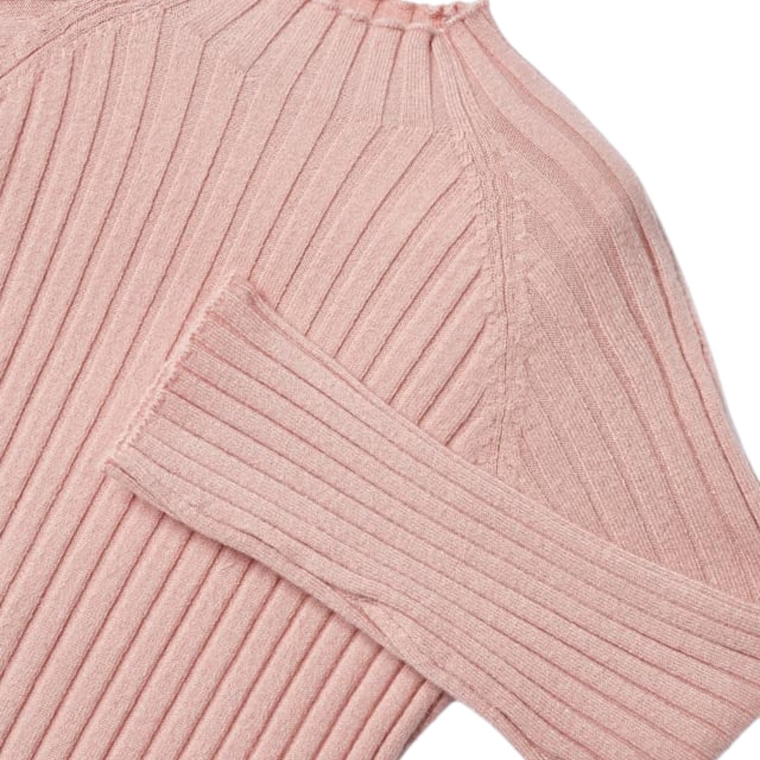 Camiseta de rayas de manga larga y cuello alto para niña de la colección otoño-invierno de Mayoral, color rosa.