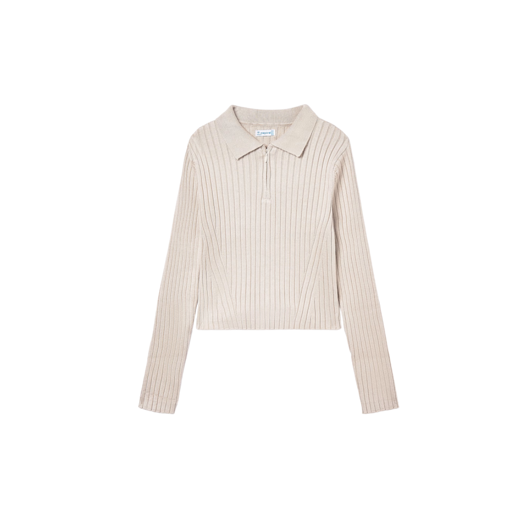 Contiene fibras de LENZING TM ECOVERO TM Viscosa. Polo de manga larga para chica. Cuello de polo clásico.