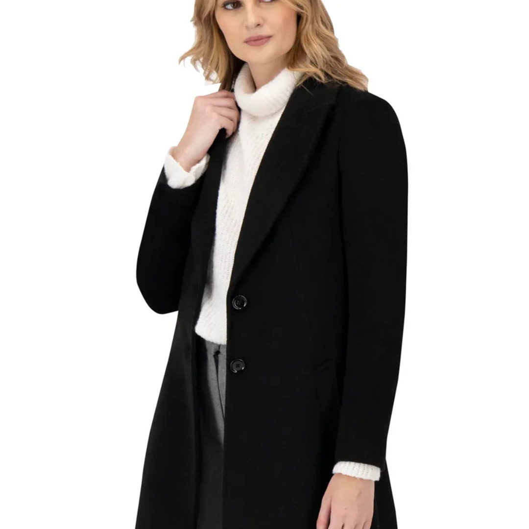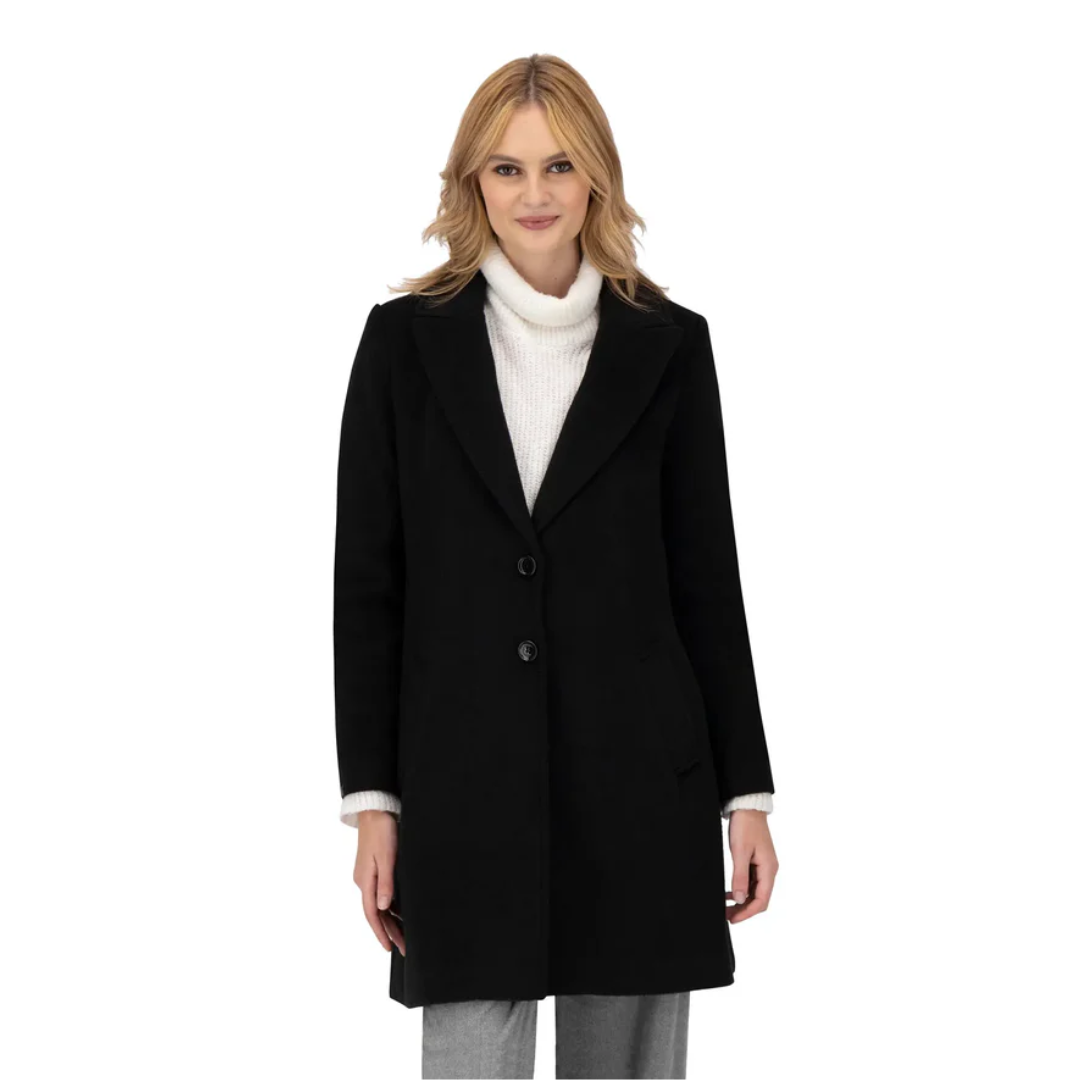 Este abrigo de corte recto presenta una solapa clásica y un cierre frontal con dos botones. Su diseño ajustado y minimalista realza la figura, mientras que los prácticos bolsillos laterales brindan funcionalidad. Ideal para complementar con estilo tanto conjuntos formales como casuales en los días fríos.