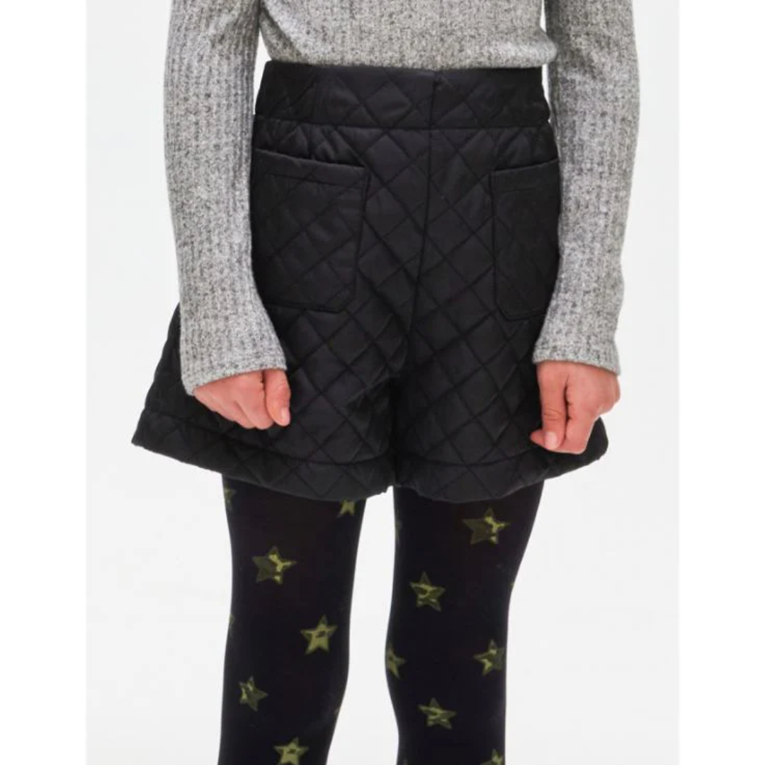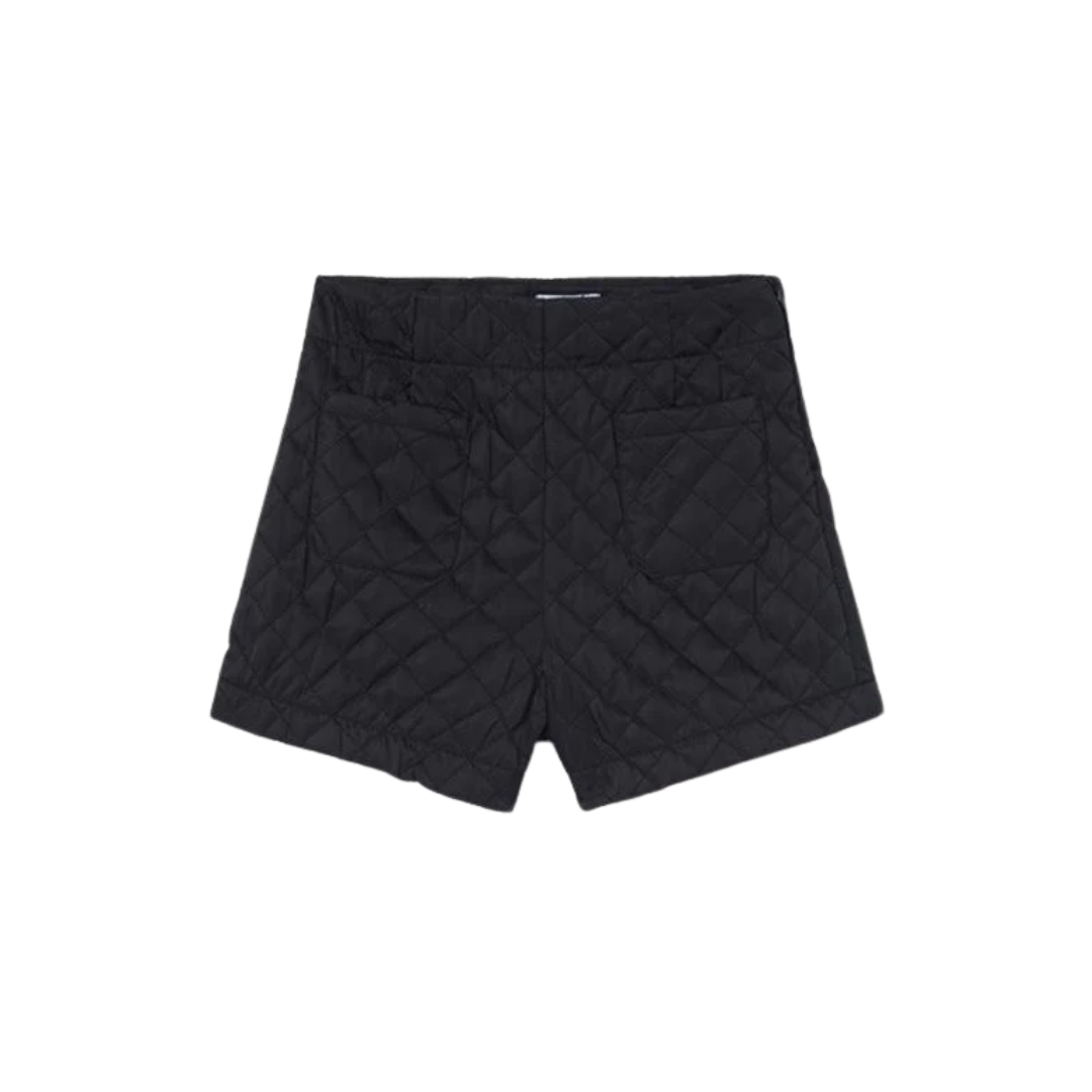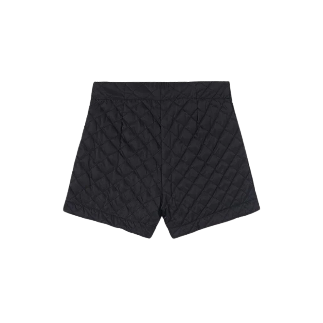Bermuda acolchada en tono negro con diseño juvenil y moderno. Confeccionada con material acolchado de calidad, cuenta con dos bolsillos frontales y cierre lateral, lo que combina estilo y funcionalidad. Ideal para looks urbanos o de tendencia con total comodidad.