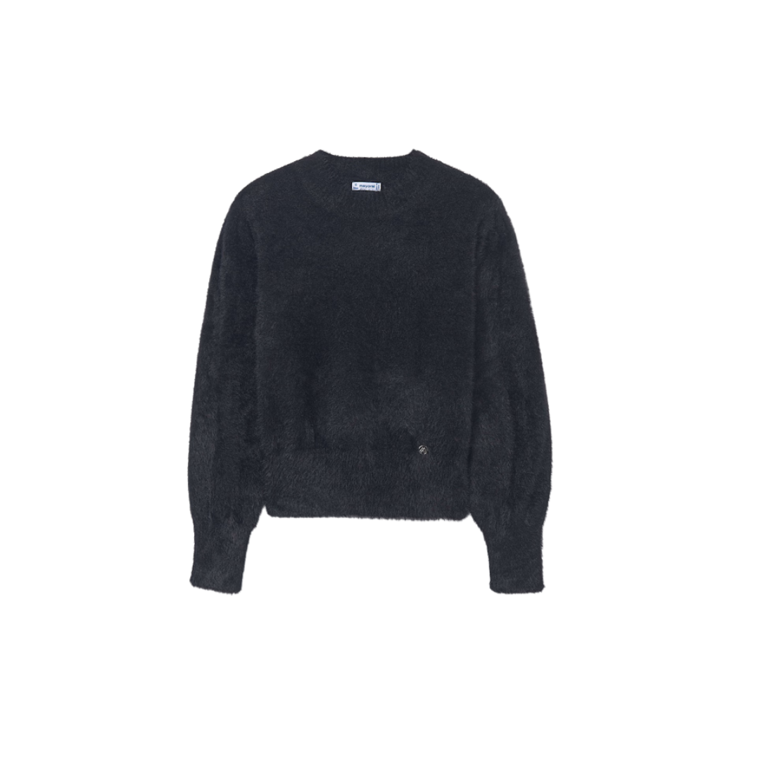 Suéter de manga larga para chica. Cuello redondo. Suave y gustoso tejido exterior de pelo.