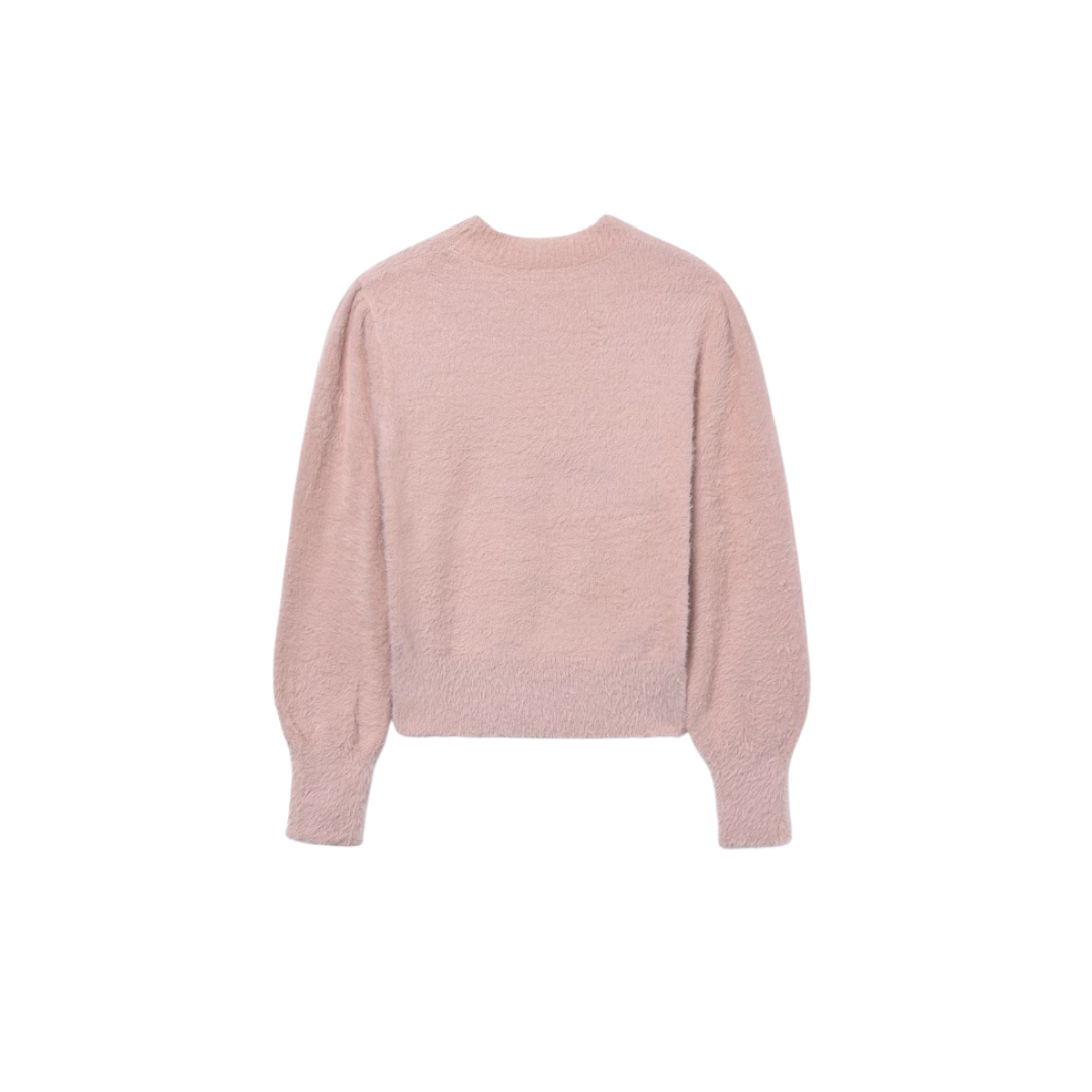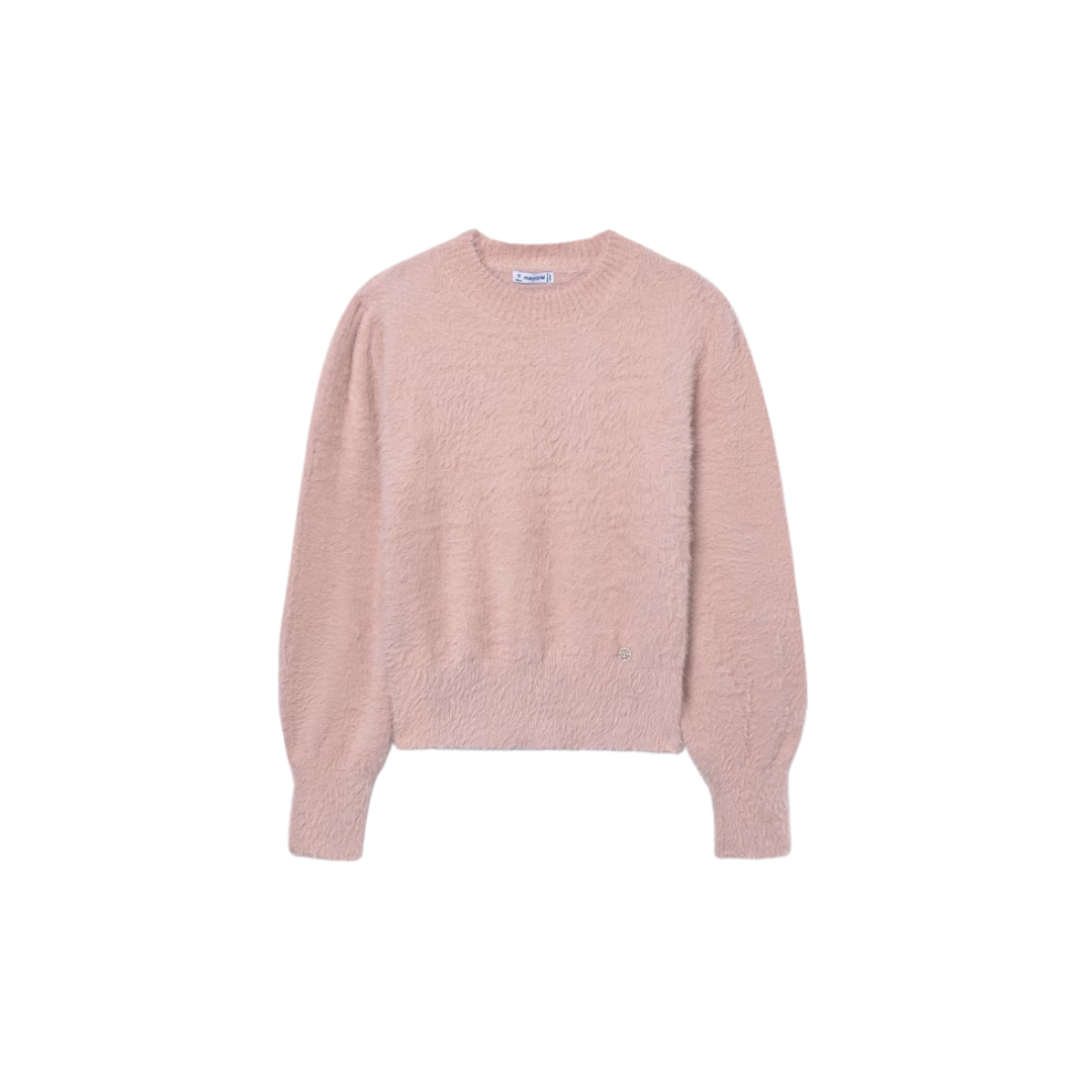 Suéter de manga larga para chica. Cuello redondo. Suave y gustoso tejido exterior de pelo.