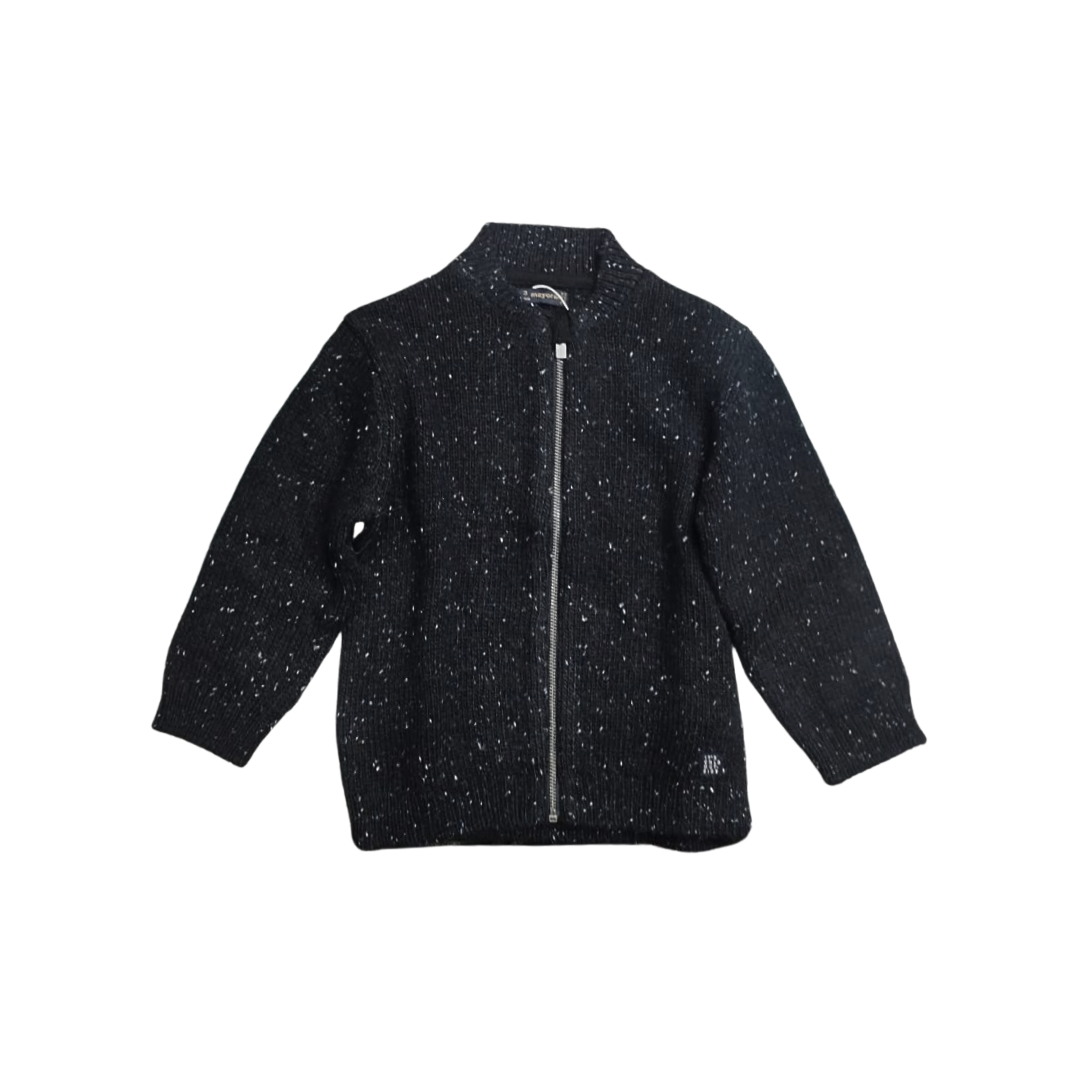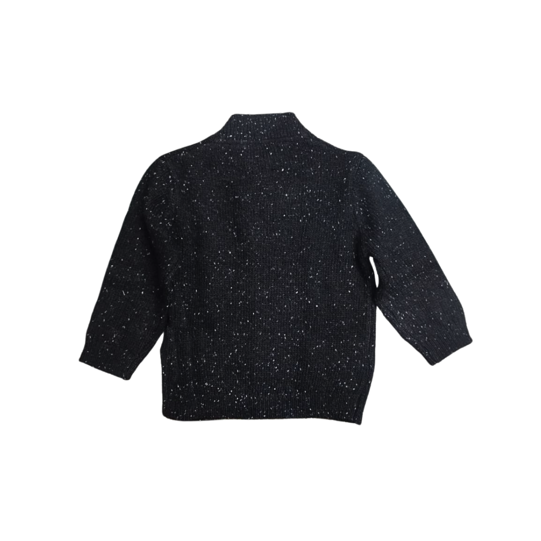 Este suéter Mayoral combina estilo y confort en una prenda versátil y moderna. Con cierre frontal y un tejido cálido de punto suave, es perfecto para los días fríos. Su diseño en tono oscuro con pequeñas motas claras aporta un toque elegante y actual, ideal para usar con jeans o pantalones casuales.