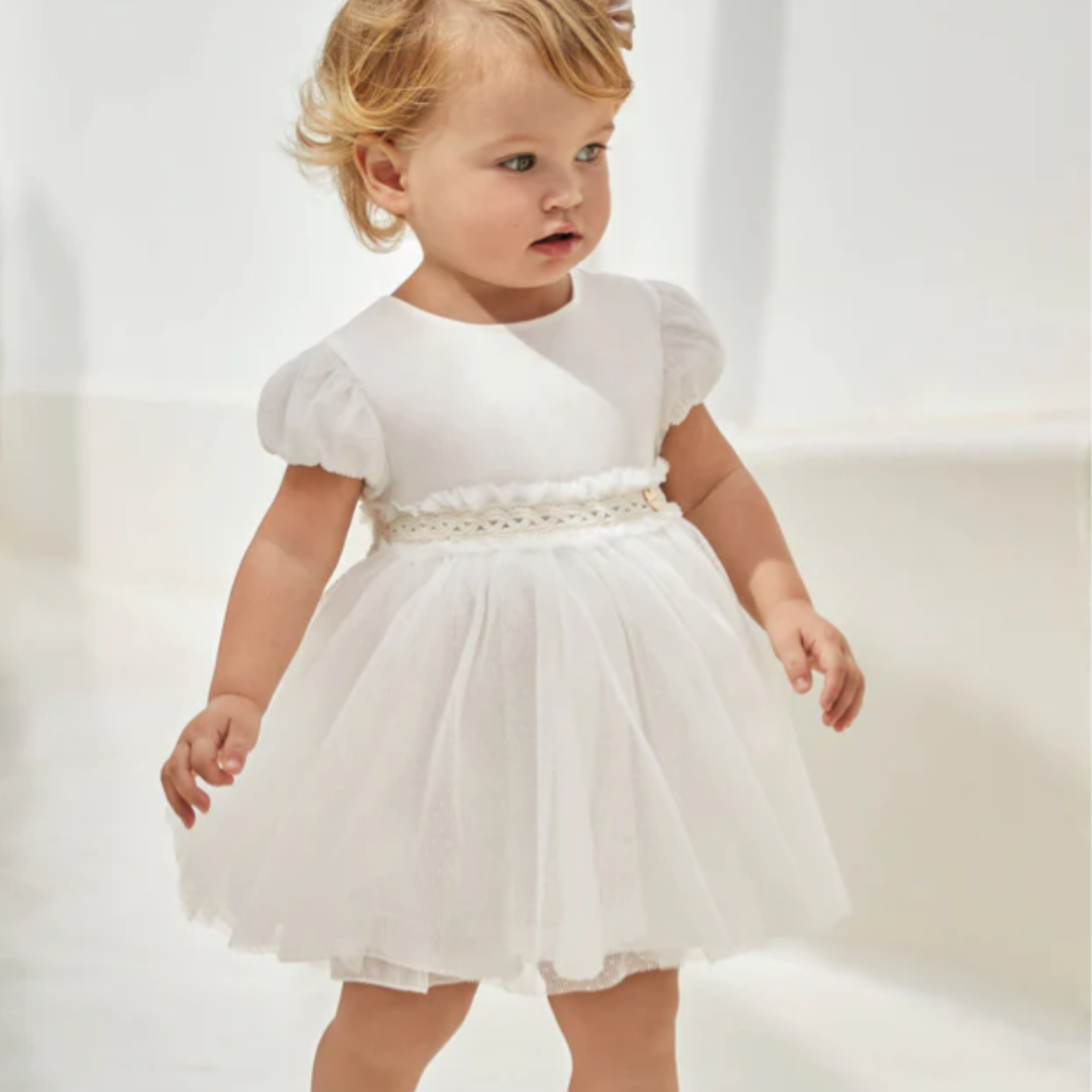 Romántico y lleno de encanto. Este vestido Mayoral está confeccionado en delicado tul con forro suave, ideal para eventos especiales. Su diseño ligero y detalles sutiles aportan un toque de elegancia y dulzura, perfecto para que las pequeñas brillen con estilo.